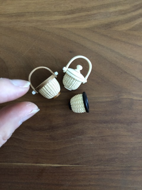 いつも私が作るペンダントトップよりもずっと小さい白い蓋のついたミニチュアバスケットを作りました。